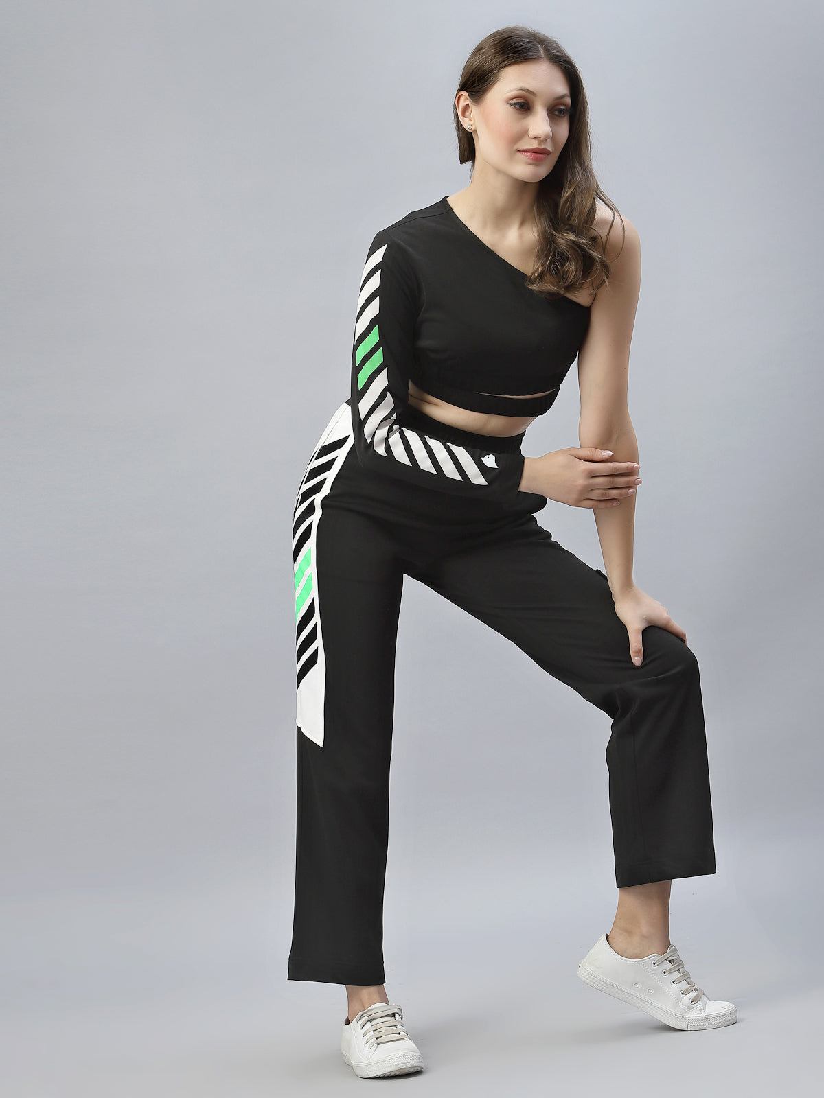 Make a statement this season with the Spice it up with JB set; you'll be the talk of the town! This one shoulder crop top and boyfriend fit pants combination is perfect for day to evening wear. Show off the Just Billi classic detailing and be the envy of all your friends! Let JB take your style game up a notch!