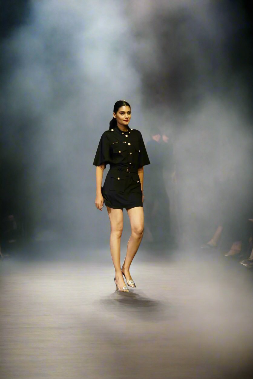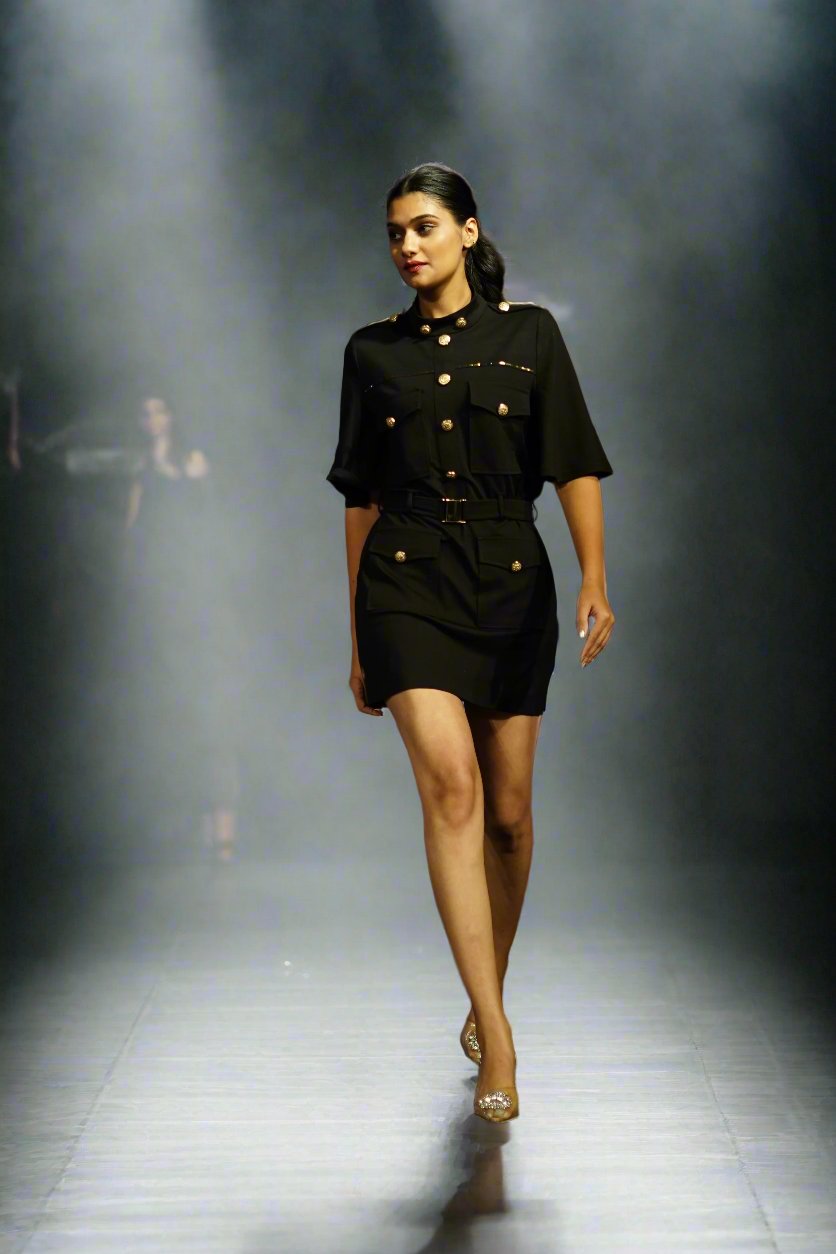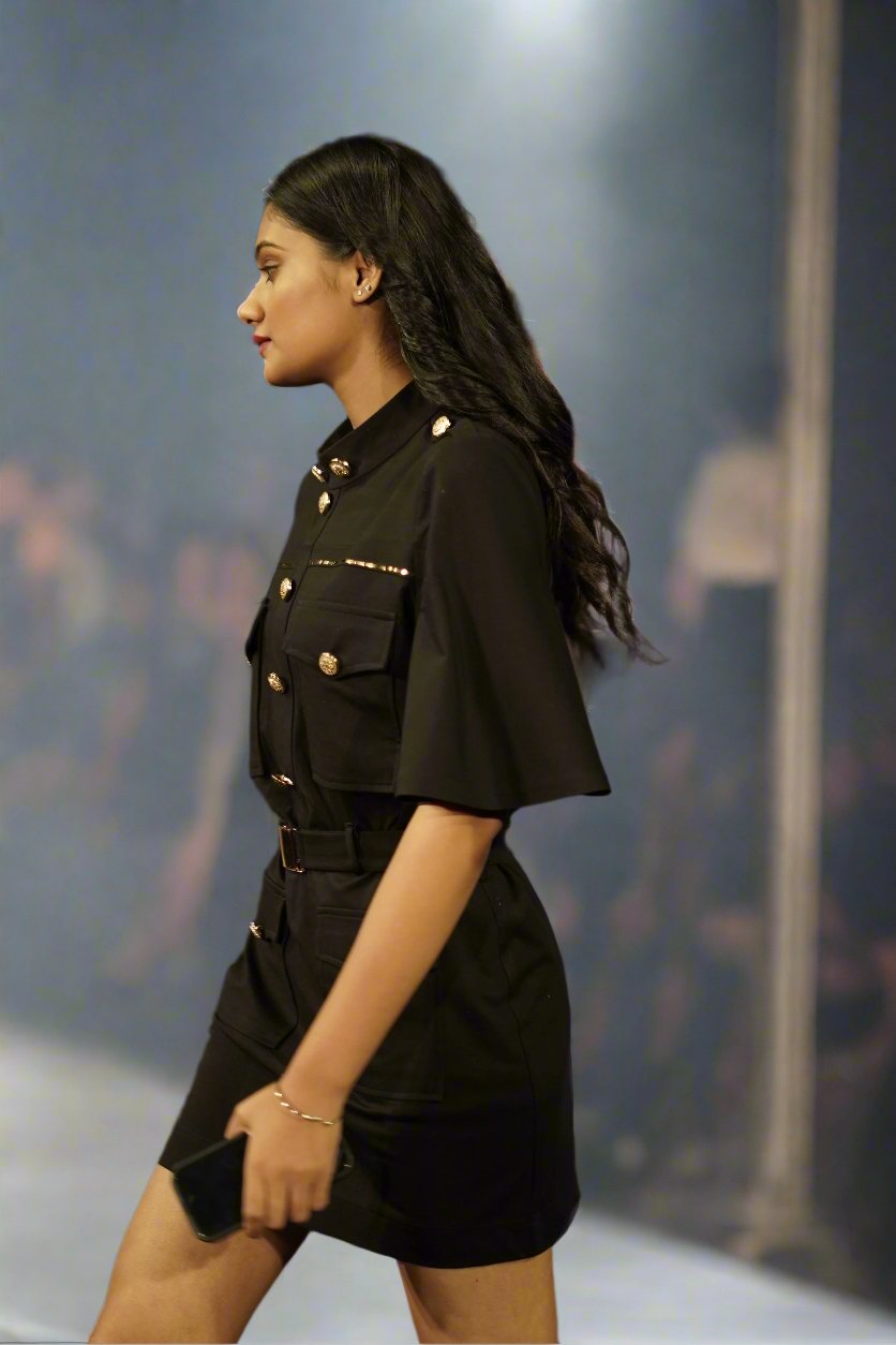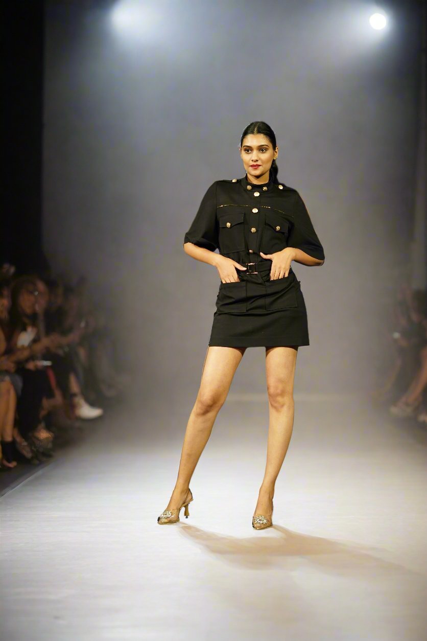 The Beyond the Eiffel Dress is the epitome of Parisian allure, balancing elegance with a touch of seductive charm. In classic black, this short-length dress features a covered neckline, chic sleeves, and stylish pockets for a refined look. The eye-catching multiple-button design adds a playful yet sophisticated detail, making it the perfect blend of sexy and sophisticated for any occasion.